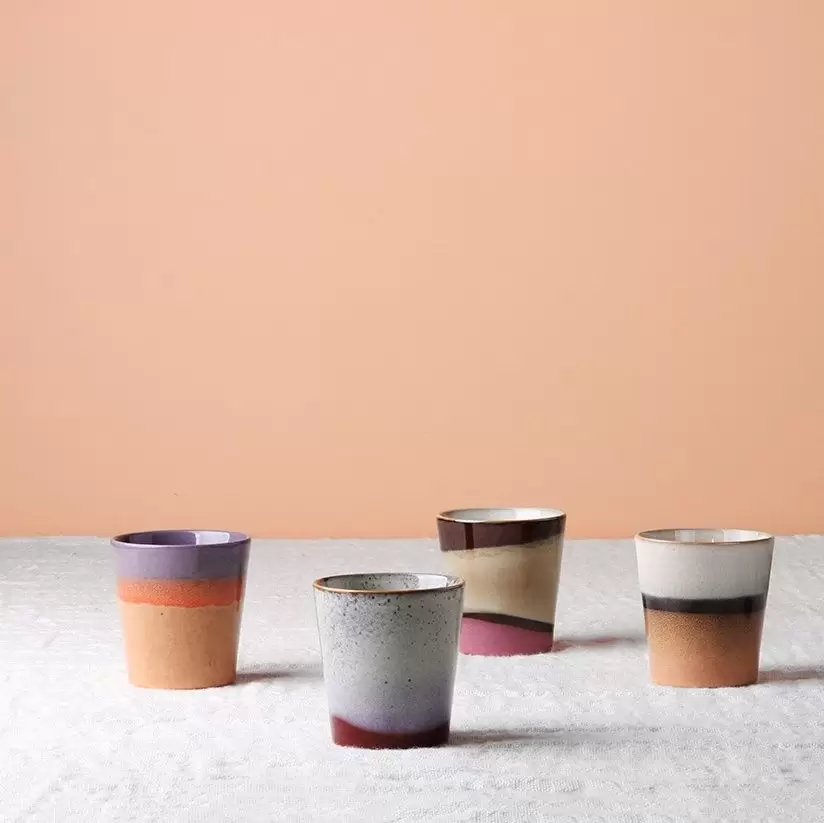 Zestaw 4 ceramicznych mis z kolekcji 70s holenderskiej marki HKliving. Ta multikolorowa seria designerskich naczyń stylizowana jest modnym stylem z lat 70., a każda z mis wykonywana jest ręcznie z wysokiej jakości ceramiki do tego zdobiona w unikatowy wzór i kolorystykę.