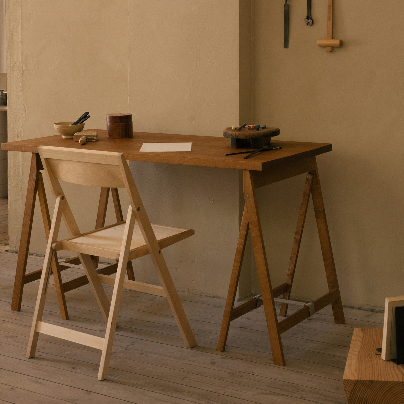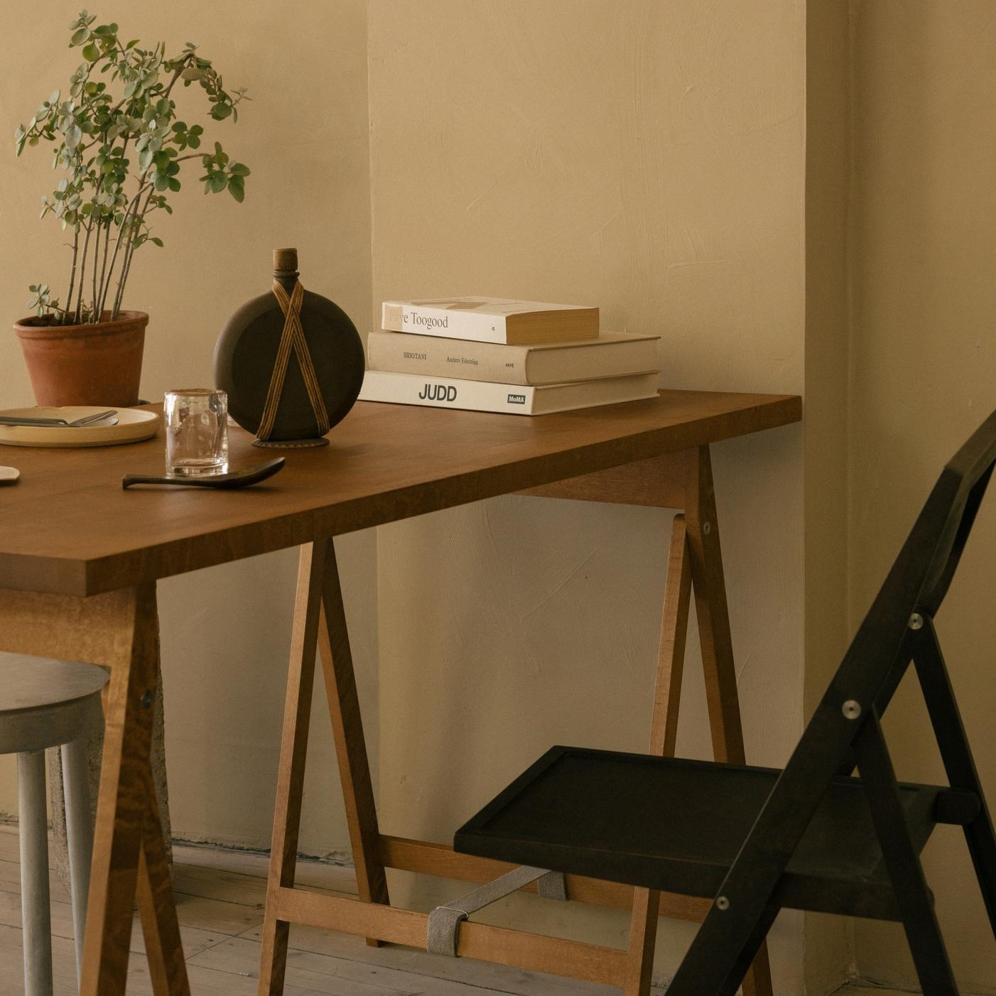 7-14 dniStół składany Flat Frama to drewniany stół składany zaprojektowany z myślą o elastycznym, współczesnym sposobie życia, w którym przestrzeń ma zmienny charakter. Ten stół do małego mieszkania łączy funkcję stołu do pracy i wspólnych posiłków, oferując pełnowymiarową powierzchnię użytkową w lekkiej, mobilnej formie. Konstrukcja opiera się na dwóch niezależnych elementach: składanych kozłach oraz blacie, co czyni go funkcjonalnym stołem modułowym drewnianym, który można łatwo przenosić, montować i przechowywać.