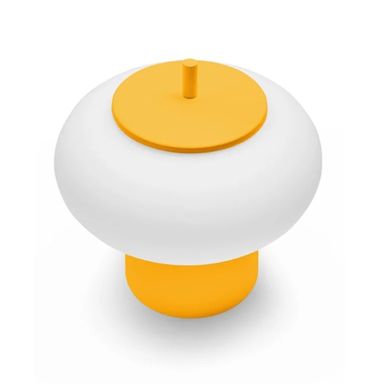 Matowy, biały klosz o średnicy 22 cm subtelnie rozprasza światło, tworząc przyjemną, nastrojową atmosferę. Całość uzupełnia lakierowane mocowanie ścienne w kolorze żółtym, które wprowadza do wnętrza naturalny, modny akcent i podkreśla nowoczesny charakter lampy.