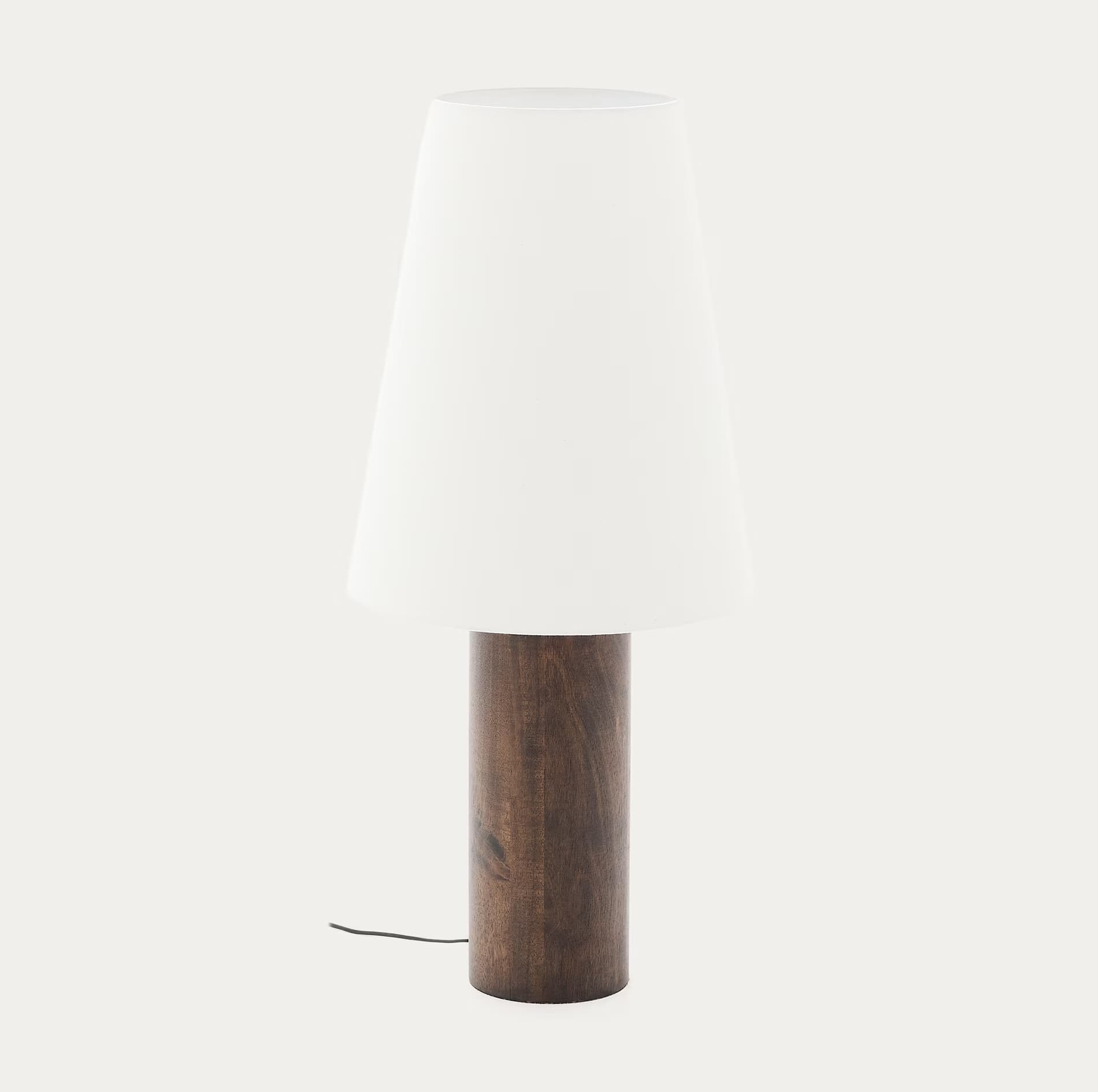 Lampa podłogowa Marga to połączenie solidnego litego drewna kauczukowego z subtelnym abażurem z bawełny w kolorze kości słoniowej. Jej ciemna podstawa o prostych, geometrycznych liniach wnosi do wnętrza ciepło i charakter, a unikalne słoje i sęki czynią każdy egzemplarz wyjątkowym. Naturalne materiały nadają lampie ponadczasowy urok, pasujący zarówno do stylu nowoczesnego, vintage, jak i skandynawskiego.