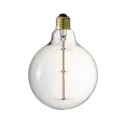 dniŻarówka dekoracyjna z dużą sferą i widocznymi, prostymi żarnikami. Żarówka może posiadać delikatne rysy powstałe w wyniku ręcznego wykonania